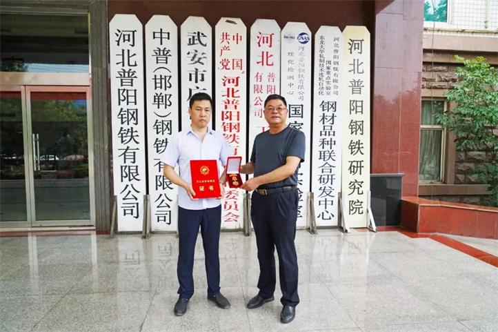 7月17日上午,武安市工會常務副主席王啟良領導一行來到普陽鋼鐵,為普陽黨委副書記、總經(jīng)理石躍強頒發(fā)“河北省勞動模范”獎章及榮譽證書。公司總經(jīng)理石躍強和辦公室主任楊建軍進行了熱情接待。