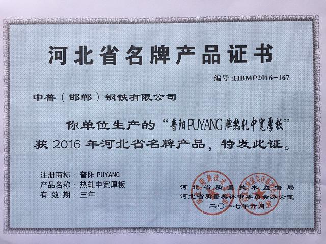 近日,河北省質(zhì)量技術(shù)監(jiān)督局、河北省質(zhì)量獎(jiǎng)評審委員會(huì)辦公室,為我公司頒發(fā)了《河北省名牌產(chǎn)品證書》。我公司“熱軋中寬厚板”,榮獲“2016年河北省名牌產(chǎn)品”稱號。