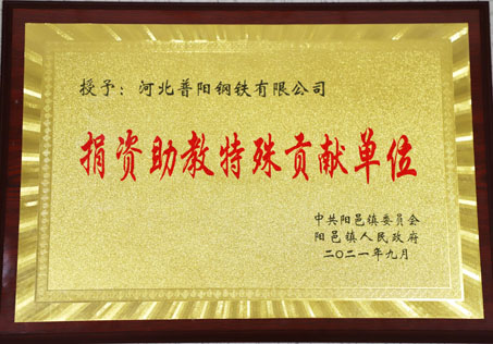 陽邑鎮(zhèn)黨委書記王日田向普陽頒發(fā)了“捐資助教特殊貢獻單位”榮譽獎牌。