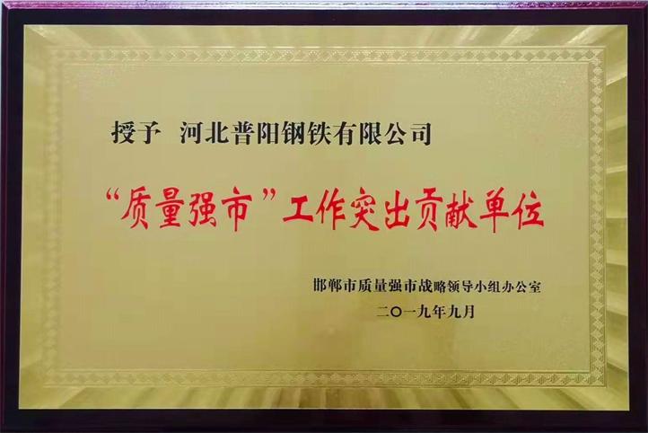 普陽鋼鐵自建廠以來,始終高度重視質(zhì)量管理工作,專注于為客戶提供高質(zhì)量、高附加值的精品鋼材,全面推行“窄幅工藝”和精益管理,通過“走出去,引進來”“嚴管細管”等方法,持續(xù)不斷地優(yōu)化工藝技術(shù),穩(wěn)定提升產(chǎn)品質(zhì)量,憑借卓越的質(zhì)量管理,先后榮獲“武安市長質(zhì)量獎”“河北省政府質(zhì)量獎提名獎”“邯鄲市長質(zhì)量獎”和“全國質(zhì)量獎鼓勵獎”等重量級榮譽,有5項產(chǎn)品榮獲國家冶金產(chǎn)品實物質(zhì)量最高獎項“金杯獎”。 |