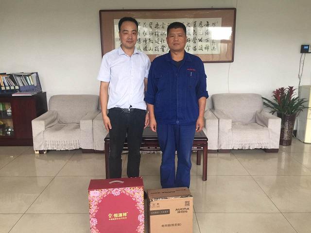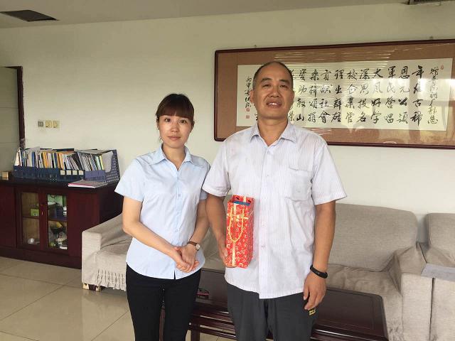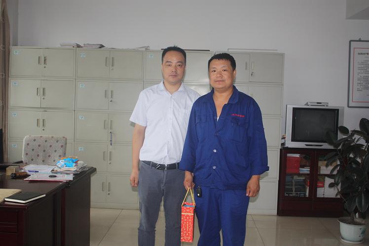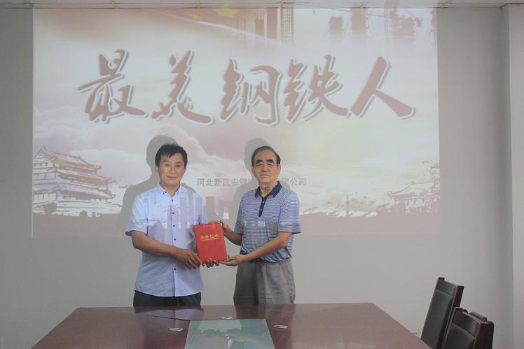 張勝利在接受新武安鋼鐵集團董事長萬喜河頒獎時的照片