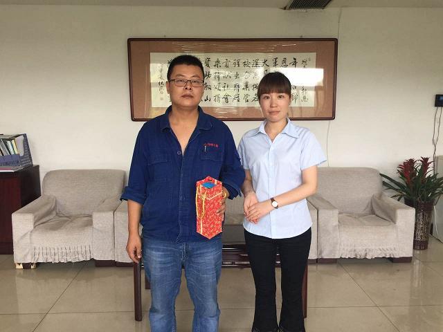 ?,F(xiàn)利(“最美鋼鐵人”評選活動優(yōu)秀獎)在領獎時的照片