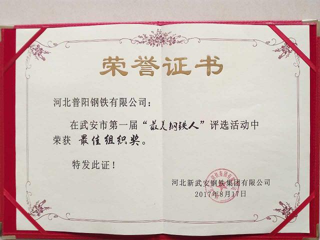 8月16日,武安市首屆“最美鋼鐵人”評選結(jié)果揩曉:我公司焦化廠廠長張勝利、普陽煉鋼廠廠長石劍飛、中普煉鐵廠廠長申建軍,榮獲此次活動的前三名;申習民、王旗杰、牛現(xiàn)利榮獲“優(yōu)秀獎”。同時,我公司還榮獲“最佳組織獎”。