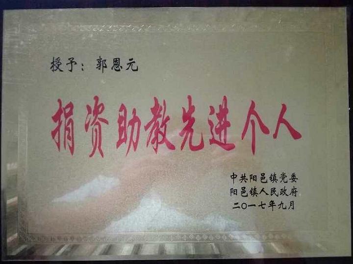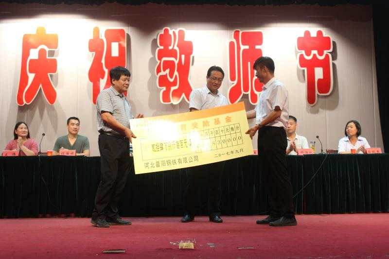 會(huì)上,優(yōu)秀教師代表做了典型發(fā)言,對(duì)捐資助教先進(jìn)單位、先進(jìn)個(gè)人及優(yōu)秀教師進(jìn)行的頒獎(jiǎng)。我公司榮獲“捐資助教先進(jìn)單位”,董事長(zhǎng)郭恩元榮獲“捐資助教先進(jìn)個(gè)人”??偨?jīng)理助理石現(xiàn)英代表公司為陽邑鎮(zhèn)捐贈(zèng)了教育獎(jiǎng)勵(lì)基金。