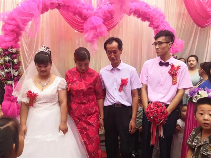 8月24日,普陽工會委派婚慶組成員李波龍、溫貴川、孟冰玉,赴盤郊村為日鑫板材工友趙鵬飛(新娘李靜)提供婚慶服務,并代表公司工會向一對新人送上新婚祝福。