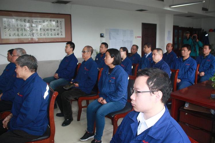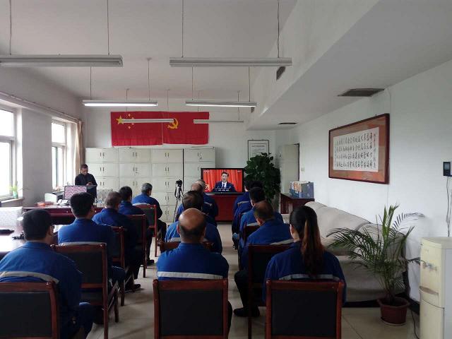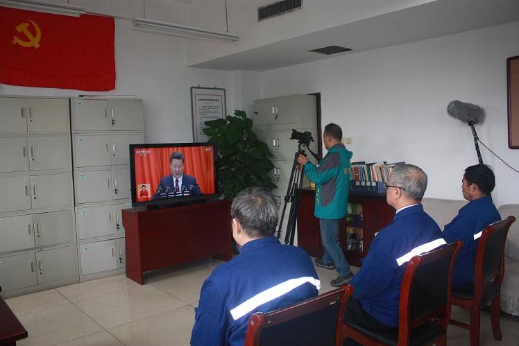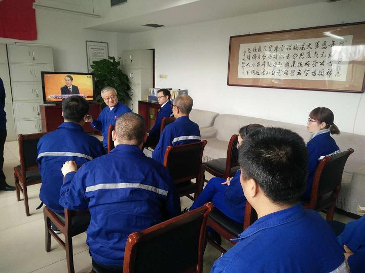 公司黨委書(shū)記郭恩元和公司黨員代表正在觀看“中國(guó)共產(chǎn)黨第十九次代表大會(huì)開(kāi)幕式。