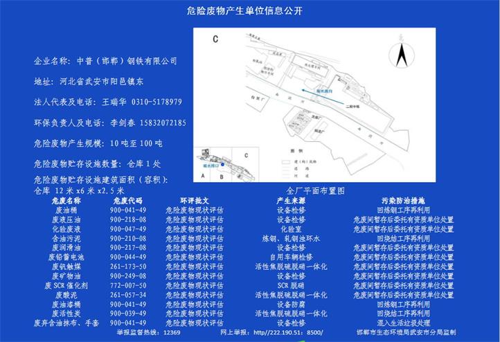 中普(邯鄲)鋼鐵有限公司危險廢物產(chǎn)生單位信息公開