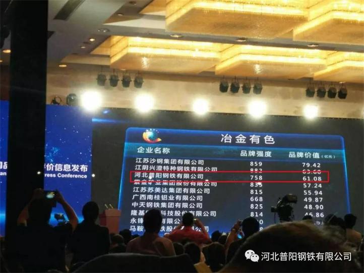 從5月9日召開的2018中國品牌價值評價信息發(fā)布暨第二屆中國品牌發(fā)展論壇會上獲悉,我市普陽鋼鐵榮列冶金有色行業(yè)品牌價值全國第五名,品牌強(qiáng)度758,品牌價值61.08億元。