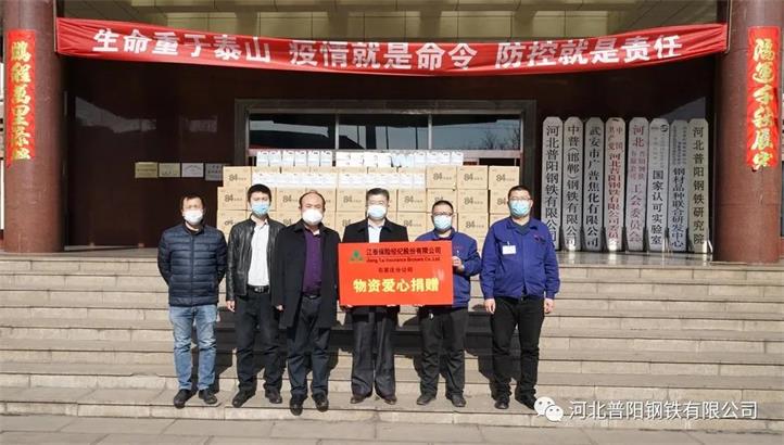 3月3日,江泰保險(xiǎn)經(jīng)紀(jì)股份有限公司石家莊分公司張彥平經(jīng)理一行代表江泰經(jīng)紀(jì)和保險(xiǎn)向集團(tuán)贈(zèng)送防疫用品(84消毒液70箱,醫(yī)用酒精24壺,口罩1000個(gè)),支持和幫助集團(tuán)做好疫情防控工作,安監(jiān)部申利波、保險(xiǎn)科李美洲熱情接待了張經(jīng)理一行,并對(duì)江泰的友好贈(zèng)送表示感謝。