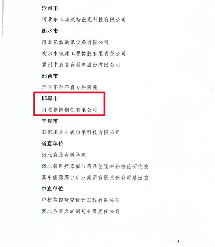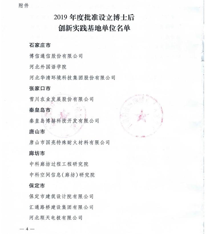 近日,根據(jù)《河北省人力資源和社會保障廳、河北省博士后工作管理委員會【2019】311號》文件公示,全省共有23家單位獲批設(shè)立博士后創(chuàng)新實踐基地,其中河北普陽鋼鐵有限公司榜上有名,是邯鄲市今年唯一入選的鋼鐵企業(yè)。