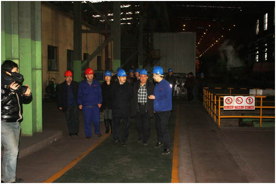 本報(bào)訊(編輯室)12月12日下午,東北大學(xué)王國棟院士、軋制及連軋技術(shù)自動(dòng)化國家重點(diǎn)實(shí)驗(yàn)室主任吳迪、材料冶金學(xué)院副院長朱苗勇等一行,在武安市副市長崔耀鵬的陪同下視察了我公司1250熱卷廠和二期中厚板生產(chǎn)線。圖為總經(jīng)理石躍強(qiáng)、副總經(jīng)理陳丹峰陪同王國棟(右二)在二期中板生產(chǎn)線。