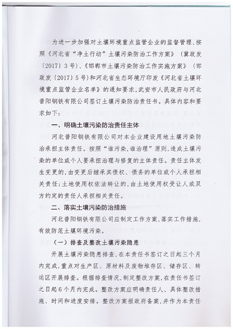 普陽鋼鐵-武安市人民政府土壤環(huán)境重點(diǎn)監(jiān)管企業(yè)污染防治責(zé)任書