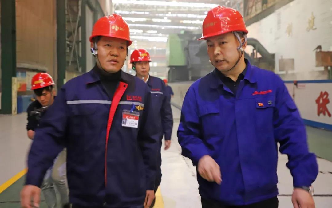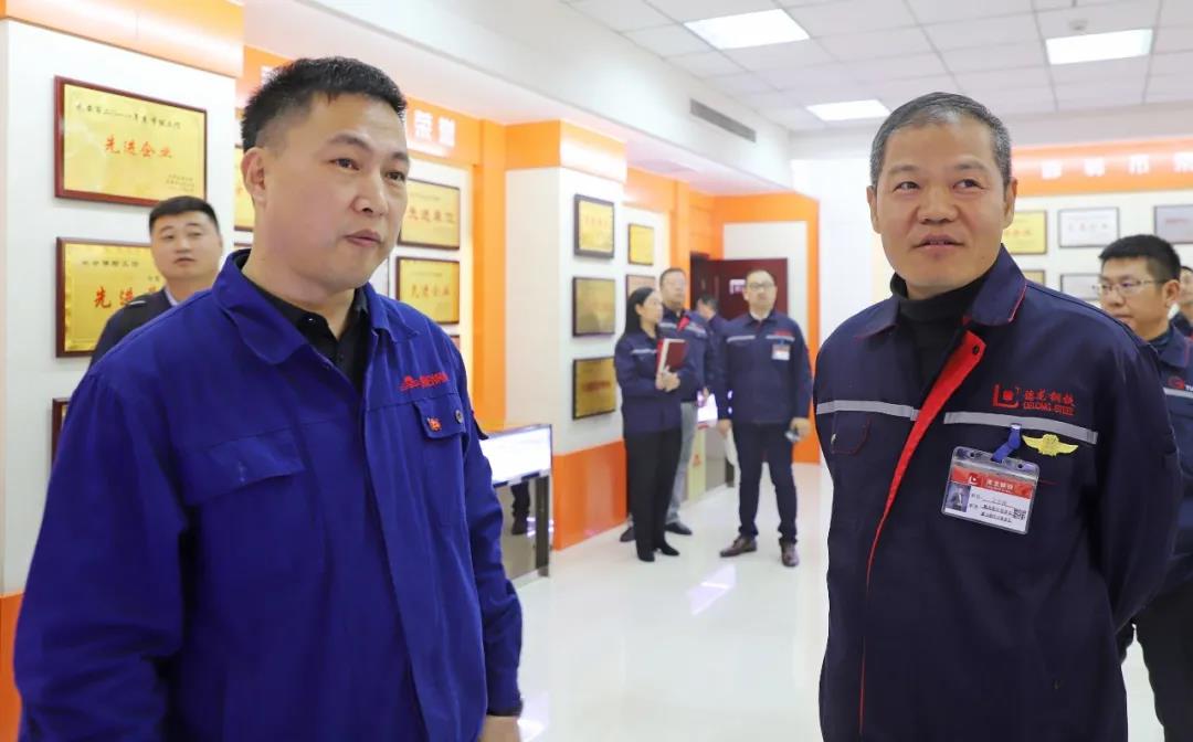 座談結(jié)束后,石總陪同丁董一行參觀了普陽(yáng)沙盤模型展、風(fēng)雨四十年廠史展,并到二期中板生產(chǎn)車間實(shí)地調(diào)研。