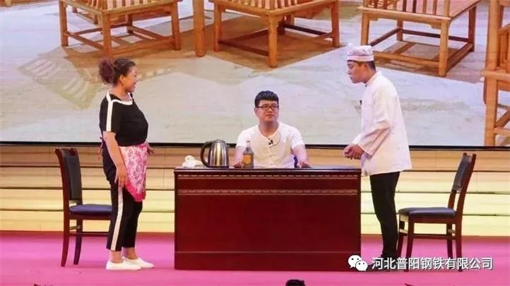 整場頒獎晚會由大合唱《普陽之歌》《勞動托起中國夢》拉開帷幕,在吉祥喜慶的舞蹈《中華全家?!分薪Y(jié)束。現(xiàn)場高潮迭起,尤其是中普煉鋼的情景表演《共同來環(huán)?!?、小品《祝壽》、舞蹈《海草海草》,中普煉鐵的音樂快板《勞動最光榮》、情景歌舞《跪羊圖》以及普陽煉鋼的《眾人劃將開大船》贏得現(xiàn)場觀眾陣陣掌聲和高度稱贊。