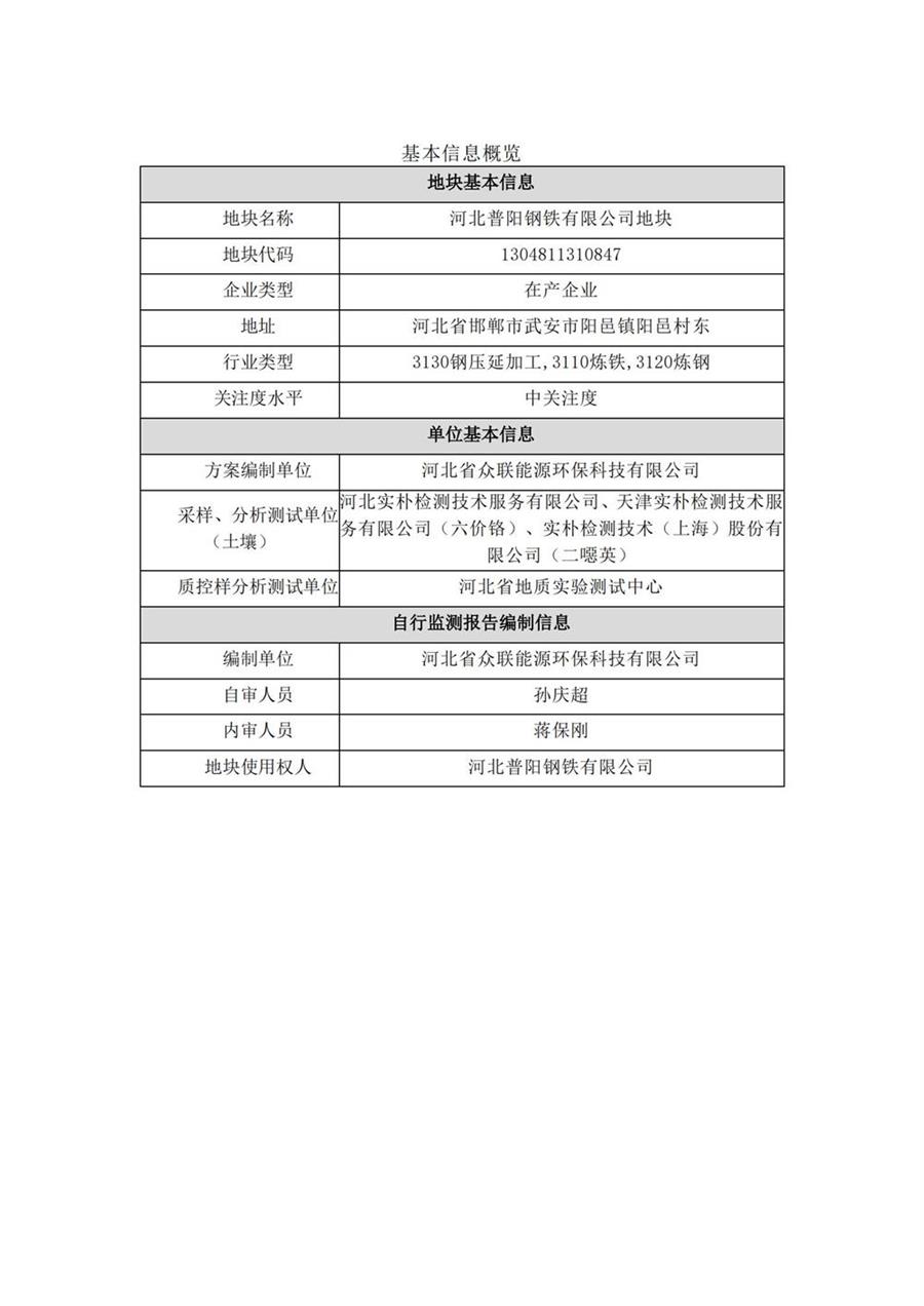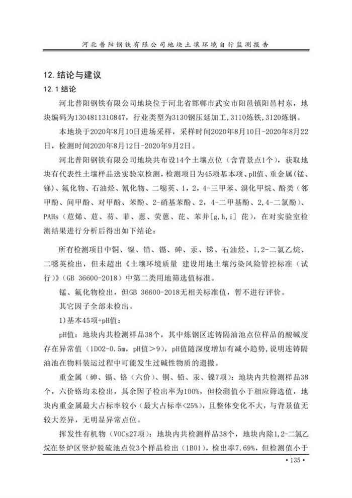 河北普陽鋼鐵有限公司地塊土壤環(huán)境自行監(jiān)測報告